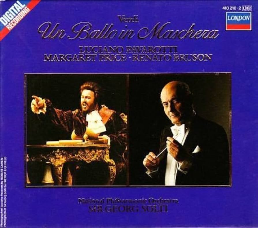 « Donnez-moi les quatre plus belles voix du monde ! », exigeait Toscanini pour diriger le Trouvère. La formule magique peut s’étendre à d’autres titres du répertoire. Decca l’a mise en application dans les années 1980 pour un enregistrement d’Un ballo in maschera qui, depuis, occupe la première marche de la discographie. Tout d’abord, quatre chanteurs, à leur zénith donc, dans une prise de son idéale : en Riccardo, la splendeur solaire de Luciano Pavarotti – Louis XIV camouflé en gouverneur de Boston – ; en Amelia, la pureté indécente de Margaret Price – peut-être le plus beau timbre de soprano qui ait jamais existé – ; en Renato, la noblesse irascible de Renato Bruson ; et autour du cou d’Oscar, le collier de perles fines enfilé par Kathleen Battle. Christa Ludwig, en Ulrica, transforme en quinté plus ce quarté de luxe. Mais, dans cet opéra à l’équilibre fragile, entre tragédie et comédie, le rôle du chef intervient avant tout autre paramètre. Un quart de siècle après une première version dominée par le Riccardo classieux de Carlo Bergonzi, Sir Georg Solti propose une lecture où la subtilité l’emporte sur l’emphase et l’intensité sur la solennité. Cette attention accrue aux détails et aux couleurs orchestrales met en valeur les thèmes véhiculés par la partition – l’amour interdit, la fusion de l’extase et de la mort, la musique comme expression d’un désir inassouvi qui, ensemble confondus, valent au Bal Masqué l’épithète de « Tristan verdien ».