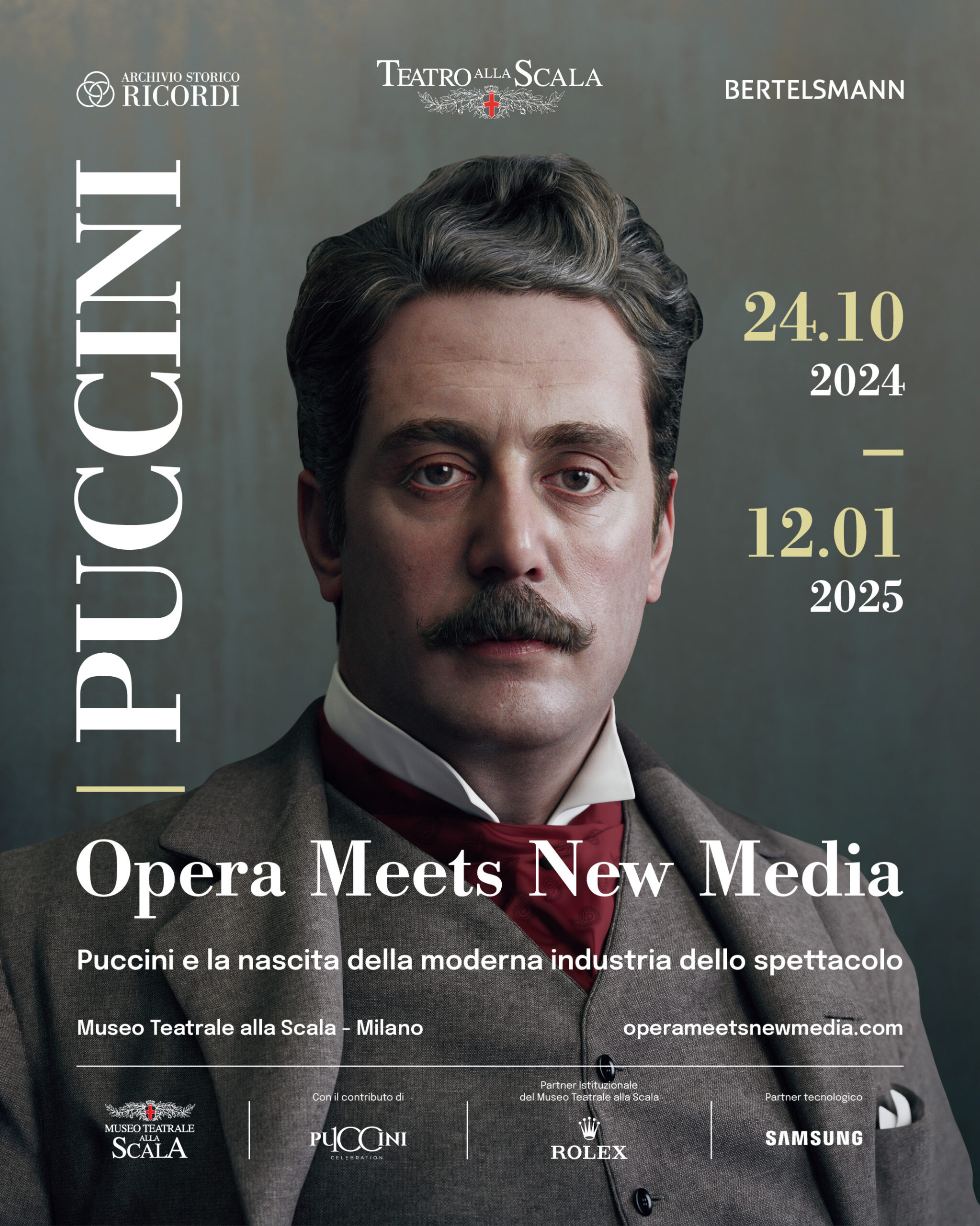 Sous le titre de Puccini, Ricordi et l’émergence de l’industrie moderne du divertissement l’exposition décrit ce moment charnière du début du XXe siècle où les techniques d’enregistrement du son et de l’image vont révolutionner le divertissement, par le disque et le cinéma. Ces nouveaux supports avaient besoin de contenu et l’opéra y contribuera, en particulier pour les disques, qui ont contribué au succès d’artistes tels que Enrico Caruso. Il y a également des affiches, des projets de décors, des dessins de costumes, des 78t et autres objets rares, dans un état de conservation exceptionnel.