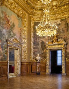 Alors que les échafaudages masquant la façade de la Salle Favart devraient disparaître vers le milieu du mois prochain, le public pourra dès ce soir redécouvrir le foyer de l’Opéra Comique, entièrement restauré pour un montant d’environ un million d’euros, restauration financée à 70% par les mécènes américains du World Monuments Fund. Ce lundi 14 janvier, à l’invitation de Jérôme Deschamps, le président du WMF Europe a présenté à la presse la nature et l’ampleur des travaux réalisés. Au bout d’un siècle d’usage et de tabagie des spectateurs, les ors, les marbres et les fresques n’étaient plus que l’ombre d’eux-mêmes. Les stucs et les boiseries ont donc été nettoyés, les lustres pesant une tonne chacun ont retrouvé leur éclat, les fresques leurs couleurs vives, et l’on peut à nouveau admirer le décor conçu par les peintres Albert Maignan et Henri Gervex pour ce foyer ouvert en 1904 (alors que le théâtre avait été inauguré en 1898). Il ne reste plus qu’à attendre juin prochain pour que la pièce retrouve ses rideaux en soie naturelle, actuellement en cours de tissage par la maison Prelle, à Lyon ; quant au parquet, il sera restauré dans le courant de l’année 2013. Que les généreux mécènes soient à nouveau remerciés, et puisse leur attention se pencher bientôt sur les autres décors de l’Opéra Comique, les fresques des rotondes et des escaliers, qui mériteraient bien, elles aussi, un rafraîchissement. Par rapport aux ambitieux projets que soutient le World Monuments Fund Europe, comme la restauration du théâtre de la Reine au Petit Trianon ou celle de la galerie des Carrache au Palais Farnèse, cela ne devrait pas représenter un trop gros effort financier. [Laurent Bury]