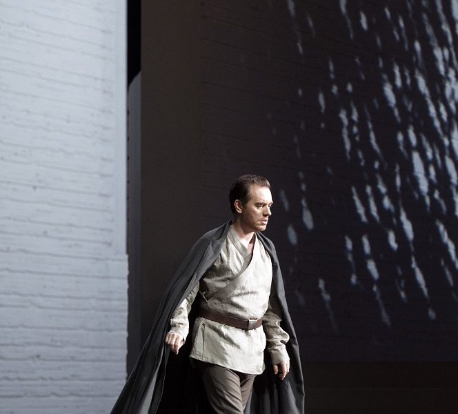 Cela nuit certainement à l’expression des interprètes du soir. Pourtant, Anna Netrebko, pour sa prise de rôle, bluffe à tel point qu’on jugerait qu’elle est familière du rôle. Dès le premier air, la soprano donne chair au dilemme cornélien de la princesse prisonnière. L’orgueil du personnage pointe sous le mordant soudain de quelques accents. La détresse et l’amour se baignent dans ce timbre, toujours aussi pulpeux, qui dissémine ses tanins dans des piani et des demi-teintes qui envouteront l’air du Nil et le duo final. Eût-elle pu ne pas lever les bras dans une imploration permanente… Défaut qu’elle partage avec l’autre russe de la distribution Ekaterina Semenchuk qui semble plus occupée à faire voler ses voiles élégamment qu’à incarner le double noir d’Aida. L’Amneris qu’elle chante reste d’ailleurs à l’état d’esquisse vocale pendant les deux premiers actes : transparente dans les ensembles et bien pâles face à ses partenaires. Surement se réservait-elle pour la grande scène du quatrième. Là, la voix retrouve de l’autorité et de la puissance. Francesco Meli, ici grimé en Jedi de Star Wars, ajoute Radamès à son répertoire. Il compose un guerrier acceptable maintenant que sa voix a pris une nouvelle dimension. En revanche, elle semble moins ductile qu’auparavant et demi-teintes et piani sont désormais quasi-détimbrés. « Celeste Aida » s’achève dans un si bémol peu élégant. Rien à redire du Ramfis et du Roi de Dmitry Belosselskiy et Roberto Tagliavini. Luca Salsi croque un Amonasro inquiétant en quelques répliques grâce au métal sombre et tranchant d’une voix qui ne manque pas de réserve. Benedetta Torre enfin signe une très belle Grande Prêtesse au timbre corsé. Déception en revanche du coté des chœurs, hors style. Les pupitres masculins sont le plus à la peine et leurs pupitres bien souvent disjoints. Surtout, hommes et femmes peinent à porter les scènes collectives comme englués dans un langage qui n’est pas le leur.