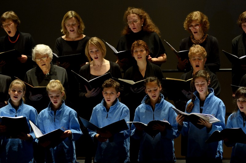 Qu’image et musique puissent entrer en correspondances harmoniques imposait leurs évidences avec les Litanies à la Vierge Noire de Poulenc et l’énigmatique présence de l’ « Olympe » du photographe Pierre Gonnord. Puissant contraste entre la supplique mystique des chœurs et la violence du désormais fameux portrait du photographe. Comment ne pas faire nôtre la salutaire provocation de cette vieille femme noire aux cheveux blanchis et aux traits marqués par la violence de la vie ? Une sainte aristocratie de la misère qui nous jauge à l’aune de la souffrance qui a durci son regard comme si, de ce hiératisme hautain et fier émanait les poignants appels à la miséricorde des Litanies. « Olympe », Vierge Noire compatissante et combattante s’éprend d’une douceur et d’une ferveur que le Chœur Régional d’Auvergne et le Chœur d’enfants de Saint-Alyre traduisent avec la sincérité de l’innocence. Une vision qui met moins l’accent sur la verticalité et les contrastes dynamiques que sur la fluidité du discours et son caractère apaisé et naïf. Approche parfaitement en phase avec les souhaits de l’auteur qui insistait pour que l’on « chante cette invocation presque rudimentairement ». Recommandation qu’Andreas Spering a faite sienne avec une rare perspicacité. Il faut dire qu’il jouait sur du velours avec les cordes de l’Orchestre d’Auvergne intégrant les notions d’humilité et de ferveur éthérée figurant noir sur blanc sur la partition. Ses pupitres sont il est vrai rompus à ces alternances maîtrisées de spiritualité aux frontières du profane et de sereines traversées minérales. Sensibilité virtuose, marque de fabrique de la formation, dont les Danses et airs antiques pour luth d’Ottorino Respighi en furent dans la foulée la confirmation.