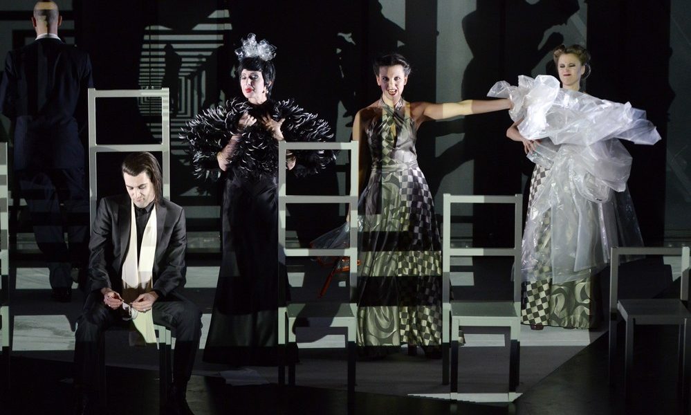 Autant l’avouer tout de suite : il n’y a pas de citrouille dans cette Cendrillon dont Wolf-Ferrari fit son premier opéra représenté. Il n’y a pas de fée non plus, mais après tout, Rossini nous y a habitués avec sa Cenerentola (qui était le titre original de l’œuvre de Wolf-Ferrari, lors de sa création à Venise). Enfin, encore faudrait-il savoir quelle était vraiment la part du surnaturel dans cet opéra tel que le conçut initialement le compositeur : non seulement il existe plusieurs versions de la partition, d’abord en italien (le soir même de la création, un tiers en fut retranché pour éviter une représentation trop longue), puis en allemand dès 1902 (sous le titre d’Aschenbrödel), et à nouveau révisée en 1937, sur un livret allemand différent. A quoi s’ajoute l’adaptation réalisée par Douglas Victor Brown pour le Statsooper de Berlin en 2011, intitulée Aschenputtel, qui emprunte aux différentes versions et a considérablement retaillé le tout pour le ramener à la durée acceptable pour un spectacle jeune public. Sans oublier la présente adaptation en français… Un véritable mille-feuilles où l’on se perd un peu, mais avec cette certitude : la réduction pour une poignée d’instrumentistes s’éloigne nécessairement beaucoup des intentions initiales de Wolf-Ferrari, qui exigeait pas moins de douze trompettes et seize cloches pour le finale… Vincent Monteil, également auteur de la traduction, dirige comme toujours avec beaucoup de conviction l’Ensemble orchestral de l’Académie supérieure de musique et du Conservatoire, mais à l’impossible nul n’est tenu, et l’on aimerait que l’œuvre soit un jour révélée dans sa vérité (il n’en existe à l’heure actuelle aucun enregistrement). D’autant qu’à la cure d’amaigrissement infligée par la transcription s’ajoutent divers bruits très parasites : cris et chuchotements, sirène d’alarmes, accords de guitare électrique et autres ajouts, comme la chanson de Frank Sinatra « Bang Bang My Baby shot me down »…