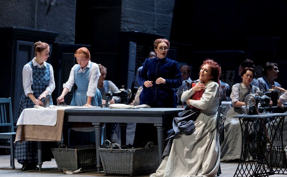 Ricarda Merbeth prend le temps d’une balade pour démêler les fils de sa couture. Son médium peine à exister entre un registre aigu aisé et des graves laborieux, ce qui la conduit à ralentir, puis à escamoter le trille sur « bleicher Seemann ». Elle trouve le bon bout au cours des deux duos suivants et délivre une scène finale haletante. On regrette un jeu scénique toujours expressionniste et pas ou peu incarné, à l’opposé de l’intelligence musicale de l’interprète. Andreas Schager a sorti la grand-voile avant même d’avoir quitté le port ! Son Erik, qui sonne bien plus comme Siegfried, fait d’abord penser à un décalage de format vocal entre lui et le reste du plateau. Mais toutes ses phrases chantées entre le mezzo-forte et le forte sans plus de couleurs ou de nuances achèvent de convaincre qu’il est gêné pour rendre pleinement justice au rôle. Cette puissance de stentor trouve à se canaliser dans la composition du personnage : cet Erik est violent et tourmenté. Le Daland de Reinhard Hagen souffre de deux défauts rédhibitoires, une absence totale de vis comica qui en font un personnage fantoche en scène, et une usure du matériau vocal qui lâche la bride à un vibrato démesuré. Ultime accroc dans les maillons de cette soirée, le chœur des femmes verse du vinaigre à l’oreille dans toute la scène des fileuses. Alti et soprani chantent complètement dépareillées. Cela s’améliore au troisième acte mais elles accusent un défaut de puissance en comparaison des hommes. Ceux-ci signent une représentation de qualité, n’était-ce un regrettable accident, lorsqu’au troisième acte ils prennent un rythme différent entre leur partie vocale et la danse que leur demande la mise en scène. En revanche, le timbre clair de Dovlet Nurgeldiyev apporte toute la fraîcheur requise à son Steuermann. Anja Schlosser est bien chantante et austère comme il sied au personnage de Mary. C’est en définitive John Lundgren qui emporte l’adhésion. Du Hollandais il possède l’aisance, la noirceur et la puissance nécessaire. D’autant que le Suédois semble avoir fortement travaillé ce qui était jusqu’alors son tallon d’Achille : la prononciation germanique.