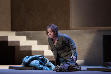Etranges sensations : à l’instar d’Elektra qui cherche la présence de son père dans chacun des recoins et chacune des pierres de cette cours de Mycènes, on cherche le souvenir du choc, la stupeur des scènes, les épiphanies inouïes de ces moments de justesse profonde. La scène de la reconnaissance où les vieux serviteurs s’étreignent avant même que le frère et la sœur n’aient compris, le moment de tendresse maternelle avant qu’Elektra n’explose… Ils sont bien là dans leur majorité, mais ce que Vincent Huguet change va finalement à l’encontre de l’harmonie générale et l’idée force qui irriguait la vision de Chéreau de bout en bout. Ce ne sont que des détails, des gestes qui ne sont plus les mêmes, mais toute la magie de Chéreau était dans cette adéquation parfaite entre un moment musical, un moment dramatique et un interprète. Ainsi Elektra ne retire plus les bandelettes de la hache avec frénésie pendant que les violons grésillent le leitmotiv d’Oreste ; elle ne s’écorche plus les mains sur ces pierres pendant qu’elle appelle son père ; elle ne s’effondre plus impuissante devant sa mère mais la saisira d’abord à la gorge. En somme, le metteur en scène réintroduit des monstres, là où Chereau les avait bazardés sans ménagement.