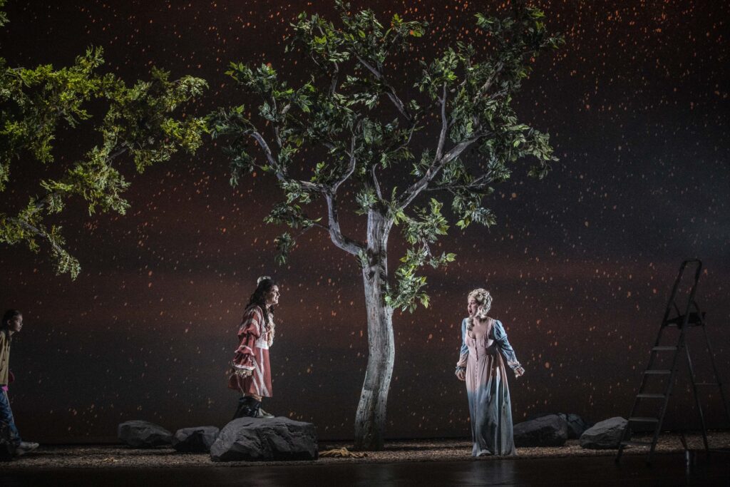L’idée d’introduire dans le spectacle le regard des enfants est excellente ; le procédé séduit manifestement un public d’ailleurs très jeune pour partie. Les artistes en herbe de la Maîtrise citoyenne itinérante de l’Opéra national de Nancy-Lorraine et les Élèves du Conservatoire régional du Grand Nancy font merveille. Ils donnent une autre dimension aux péripéties vécues par les adultes qui s’aiment, se déchirent, deviennent fous d’amour puis reviennent à la raison sous leur regard avide et innocent. Les failles, faiblesses et fêlures des différents protagonistes n’en apparaissent que plus profondes, émouvantes et sincères. Dans le rôle écartelé d’un Orlando déchiré par sa passion amoureuse ourlé d’une insoutenable jalousie, la soprano Noa Beinart met son bel instrument ambré et voluptueusement moiré au service des affres amoureux du guerrier tourmenté jusqu’à la folie. La noblesse de sa prestation est toutefois tempérée par une retenue qui annonce le retour à la raison du personnage. Annoncée souffrante, la contralto Rose Naggar-Tremblay ne semble absolument pas à la peine, s’appuyant sur une technique solide et rayonnante. Son Medoro est mieux que convaincant. Mais ce sont les deux rôles féminins qui s’avèrent les plus remarquables, par la richesse de leurs vocalises et la brillance de leurs aigus passionnés ou déchirants. La soprano Melissa Petit (qui nous a également ravis récemment à Strasbourg dans le Triomphe du Temps et de la Désillusion) est décidément fort à son aise avec Haendel et, si elle est largement reconnue Outre-Rhin, sa notoriété ne devrait pas tarder à s’amplifier de ce côté de la frontière. Son Angelica est de toute beauté. Elle trouve cependant une rivale de choix en la personne de la soprano Michèle Bréant, épatante Dorinda au timbre clair, délicieusement frais et fruité, dotée de mille charmes. Le quatuor est superbement épaulé par la basse Olivier Gourdy, dont on apprécie les qualités de comédien presque autant que la beauté des graves et l’ampleur d’une voix équilibrée et délicatement sonore.