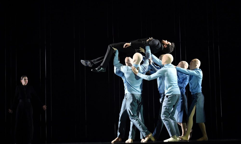 Porter à la scène un texte aussi peu théâtral que le livret du Trionfo del tempo e del disinganno est toujours un exercice un peu périlleux. Dans débat d’idées où s’affronte quatre abstractions, il est bien sûr question de problèmes existentiels propres aux humains, mais le dramatisme inhérent aux airs composés par Haendel ne s’accompagne pas d’une véritable action scénique. Les metteurs en scène ont donc le champ libre ; Krzysztof Warlikowski en avait profité à Aix-en-Provence pour y projeter ses thèmes favoris. A Montpellier (où est reprise une production créée à Copenhague l’an dernier), le propos de Ted Huffman est d’un certain côté semblable, et à la fois tout autre. Semblable parce que nous sommes plongés dans un grand décor noir, très noir, où l’héroïne est une jeune femme qui semble disserter avec différents membres de sa famille. Semblable parce qu’il y aura un cadavre à la fin, comme chez Warlikowski, mais pas le même ! Surtout, le metteur en scène américain choisit de rester fidèle au message final de l’œuvre, quand la Beauté renonce à suivre le Plaisir pour suivre les bons conseils du Temps et de la Désillusion. Dans ce spectacle, la discussion des quatre allégories s’apparente – on le comprend à la fin – à la rêverie d’une jeune femme devant son miroir, ce qui correspond exactement au texte, du reste. D’ailleurs, on admire à quel point Ted Huffman a su, très souvent, coller à un livret pourtant si abstrait, en profitant de toutes les images suggérées. L’héroïne se dédouble d’abord avec son reflet dans le miroir, puis avec toute une équipe de danseurs d’abord vêtus comme elle mais au visage dépourvus de traits. Tous ces corps animent la scène et offrent une illustration des propos tenus autour d’eux, composant des tableaux d’une sombre beauté. Et pour rendre sensible l’inexorable passage du temps, l’un des sujets centraux de l’œuvre, le procédé magnifiquement employé par Olivier Py pour le navire de Tristan et Isolde est ici appliqué à ce salon, avec ce très long canapé qui glisse lentement de cour à jardin et qui semble ne jamais devoir finir. Sauf dans les dernières minutes, quand la Beauté s’arrache à son rêve et renoue sereinement avec sa réalité familiale.