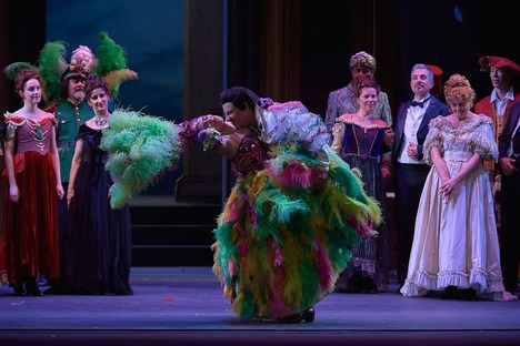 La condescendance de certaines salles lyriques à l’endroit des œuvres légères connaît une parenthèse en ces fins d’année. L’Opéra-Théâtre de Metz Métropole a toujours fait une large place au divertissement, et nous offre un classique du genre, La Vie parisienne, dans la remarquable mise en scène de Jérôme Savary. Disparu en 2013, il avait placé Offenbach au cœur de son parcours. Qui l’aura mieux illustré, avec tant d’ouvrages, durant plus de vingt-cinq ans d’une fréquentation assidue ? Première réussite absolue de sa carrière lyrique, cette réalisation fut créée à 1978 (Francfort), bien avant qu’il prenne en charge l’Opéra-Comique (2000-2007). Régulièrement reprise par de grandes scènes, elle a ainsi accédé au statut de classique. C’est la version en cinq actes qui est offerte, riche d’une demi-douzaine de numéros oubliés, permettant à Madame de Quimper-Karadec (Marie-Emeraude Alcime) de défendre la vertu avec une autorité vocale et dramatique incontestable comme au Brésilien d’animer le grand finale. Aucune longueur malgré la durée : les acclamations d’un public transporté n’auront de cesse. Pétillant, cocasse, inventif à souhait, le livret est efficace, bien tourné, d’une caricature contemporaine, sans complaisance. La partition est pimentée de citations musicales aussi improbables que drôles, les dialogues parfois enrichis de brèves allusions à notre actualité. Egalement. Inattendu, bienvenu lui aussi, Offenbach en personne intervient pour rappeler et fêter son 200ème anniversaire, chanté comme il se doit, et suppléer le chef durant les saluts. Le souvenir que l’on gardera de cette production est celui d’un très beau spectacle animé, piquant, coloré, dansé et chanté par une équipe dont les complicités sont évidentes. Visuellement, c’est un constant régal. Les beaux décors de Michel Lebois, les très nombreux costumes de Michel Dussarat sont autant de réussites, servis par de remarquables éclairages de Patrice Willaume. La chorégraphie de Nadège Maruta, spécialiste du can-can, est époustouflante de virtuosité et d’engagement. Spectaculaire et recherchée, elle est servie par de merveilleux danseurs, d’une vitalité, d’une grâce et d’une précision à couper le souffle. Les grandes revues n’ont rien à lui envier.