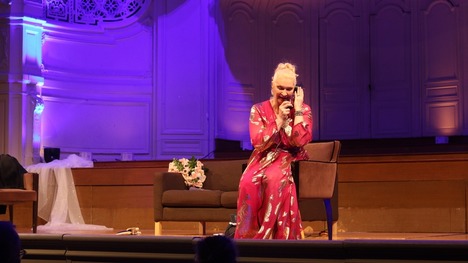 Dès le premier « allo » dans cette Voix Humaine de Cocteau mise en musique par Francis Poulenc, on s’accroche à l’accoudoir de son fauteuil car la petite heure que dure la pièce s’annonce de celles dont on ne ressort pas indemne. En décrire l’effet s’avère plus simple qu’en analyser la cause. Un timbre griffé, une présence, une détresse, une somme de signes intangibles à laquelle s’ajoutent d’autres facteurs plus objectifs : l’articulation, indispensable pour que l’essentiel du texte puisse être saisi dans ses moindres intentions ; l’utilisation d’une palette subtile de couleurs afin de surligner les mots ; le travail sur le geste scénique et vocal de manière à ce que cette histoire de femme pendue au fil du téléphone continue de conserver vraisemblance et pertinence à l’époque de la 5G. Même les fêlures de la voix, ces marques inévitables laissées par le temps, deviennent leviers d’expression.