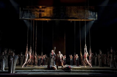 Aïda, opéra intimiste. L’idée prévaut depuis que certains, fatigués des excès hollywoodiens qu’a parfois pu susciter la scène du triomphe, préfèrent mettre en avant les raffinements chambristes de la partition et rappeler le nombre de duos qui la parsèment (cinq au bas mot). A cette assertion, les forces du Royal Opera House opposent un démenti spectaculaire. Non que la mise en scène de David McVicar renoue avec les grandes heures des arènes de Vérone. Au contraire, elle aurait plutôt tendance à briller par la pauvreté de ses décors et de ses idées, la principale étant d’éviter tout cliché pharaonique. Dans une Egypte plus barbare que de coutume, les costumes et la chorégraphie, sauvage, se chargent seuls d’apporter la touche d’exotisme nécessaire. Rien de rédhibitoire mais rien de notable.
