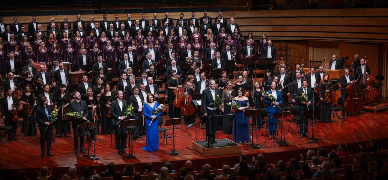 Sous la baguette de György Vashegyi, l’Orchestre national philharmonique de Hongrie sert la partition par une belle homogénéité et une précision à toute épreuve, particulièrement dans les pupitres de cuivres qui offrent, dans l’ouverture, des attaques mordantes suivies de courts crescendos parfaitement maîtrisés. L’effet est percutant. Dès les premières mesures, la submersion à venir est diffuse, l’effet de vagues que permet la partition est exploité mais pas caricaturé. Peut-être trop présent par moments (c’est un orchestre symphonique avant d’être un orchestre d’opéra), on retiendra néanmoins un art des contrastes singulièrement abouti. Le Chœur national de Hongrie – chœur qui occupe une place à part entière dans l’œuvre – éblouit par sa force d’émission et l’attention extrême à la qualité du texte français (poussant le souci du détail jusqu’à la prononciation « à la française » du latin dans les incantations mystiques du dernier acte). On regrette toutefois une homogénéité relative de nuances (mf), alors que la partition est faite d’aspérités.