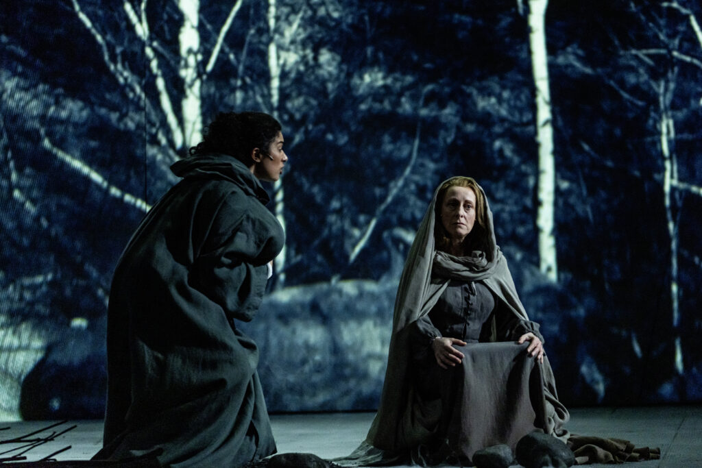 Autour de Raphaële Kennedy, qui campe une Violaine physiquement très impressionnante, frêle et trouant pourtant le plateau de sa présence mystérieuse, vocalement peu séductrice mais assumant un rôle qui pousse délibérément la voix à la limite de ses capacités (notamment dans le suraigu), on admire la Mara incandescente de Sophia Burgos, dont l’humanité désespérée n’a d’égale que la beauté vocale, ainsi que la présence un peu encombrée du naïf Jacques de Charles Rice. La basse noble de Marc Scoffoni fait merveille en Anne de Vercors, tandis que Vincent Bouchot (Pierre de Craon) et Els Janssens (la Mère) complètent un plateau à l’engagement sans failles. Les chanteurs sont sonorisés pour permettre les jeux électroniques, utilisés avec parcimonie – ce qui fausse néanmoins la projection vocale. À la tête de huit pupitres de solistes de l’Ensemble intercontemporain, Ariane Matiakh insuffle en continu vie et mystère à la partition, témoignant d’une préparation admirable.