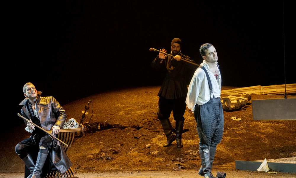 Le guerrier généreux qui a sauvé naguère Orsini n’apprécie pas que ce dernier le raconte indéfiniment. Modestie ? Ce calme qui contraste avec l’exubérance de ses compagnons, on devrait le ressentir dans sa voix. Celle de Xabier Anduaga est-elle trop belle, trop sonore, trop éclatante ? Nous l’avons d’abord ressentie ainsi, pour nous délecter ensuite de cette pulpe charnue et brillante. L’acteur joue le jeu qui lui est demandé et c’est peut-être parce que nous ne sommes pas convaincu de son bien-fondé que le personnage ne nous convainc pas entièrement, alors que le chanteur nous a séduit.