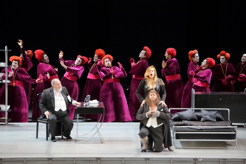 Elle agace : en vrac, les choristes déguisés en clown avec Edmondo en monsieur Loyal ; le premier acte transformé en dictionnaire amoureux du Regietheater, de « a » comme absurde à « z » comme « ze sais plus quoi inventer pourvu que ça grince » ; les sons couverts de Jonas Kaufmann, ses « a » qui ressemblent à des « o » ; la direction démesurée d’Alain Altinoglu, si envahissante qu’elle fait l’opéra de Puccini poème symphonique….