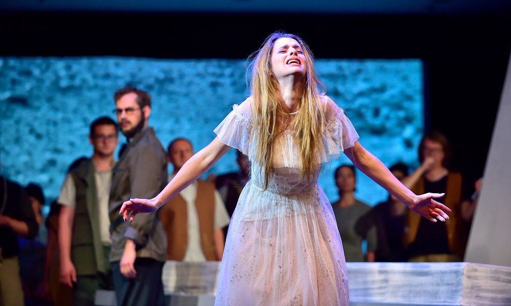 Heureusement, ce que l’on entend atténue grandement les éventuelles frustrations. Pas complètement, certes, parce que quelques bavures aux cuivres, des relâchements de la prononciation qui rendent le français exotique, un flottement synonyme de décalage dans le chœur, des imperfections qui sont la rançon du spectacle vivant. Malgré la remarque précédente, justement, le chœur mérite de très vifs éloges tant il semble se soucier des nuances relatives au sens et aux situations. Sans être parfaite, sa prononciation du français n’est pas rédhibitoire. Dans le petit rôle d’Aufide Xiang Xu a la clarté qu’on lui connaît. La Marie d’Albane Carrère a l’assurance de ceux pour qui la voie est claire ; la voix le semble aussi, bien qu’elle soit présentée comme mezzosoprano, surtout aux côtés de celle d’Elisa Balbo, une Anai aussi gracieuse que possible mais dont la voix, pour notre goût, manque de la douceur que nous associons au personnage. Au premier acte, quand elle doit chanter fort, des stridences se profilent dans le suraigu, mais au dernier acte, dans le duo avec Aménophis, elle traite son air en véritable rondo, et résout avec brio vocalises et agilités, pour le plaisir d’un public qui le lui fait savoir. Il convient d’ailleurs de signaler que tous les ensembles, duos, quatuor ou quintette, sont des réussites musicales, tant par le mariage des timbres que par la précision de l’exécution.