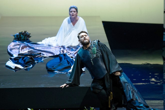 Au pupitre Giampaolo Bisanti propose une direction tout en nuance qui privilégie l’élégie au détriment parfois de certains passages dramatiques comme le trio de la fin du premier acte. La scène finale en revanche est spectaculaire dans sa grandeur tragique. Lors des saluts, le public enthousiaste a réservé un accueil des plus chaleureux à l’ensemble des protagonistes.