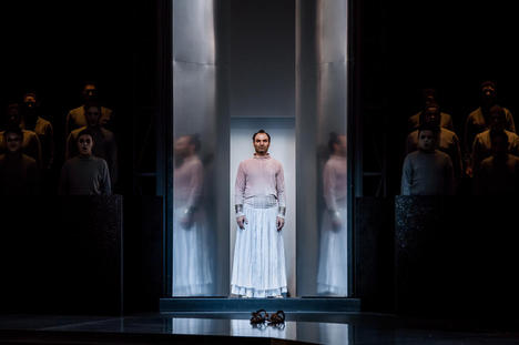 Dans cette configuration, chaque interprète devient une statue vivante, magnifié par les costumes à propos d’António Lagarto et la mise en lumière de Rui Pedro Simão. Particulièrement juste, sobre et habité par le héros qu’il incarne, Nikolai Schukoff transmet sans équivoque les certitudes initiales du jeune Œdipe jusqu’à l’angoisse du nouveau roi de Thèbes dans « Pavesco subito » avant d’entonner brillamment l’air aux accents grotesques « Nonne monstrum » auquel succède l’horreur froide de la révélation finale : « Natus sum… Lux facta sum… Lux facta est. » Avantagé par son costume, le ténor se révèle scéniquement majestueux, la solidité de la voix donnant une saveur toute particulière à son interprétation.