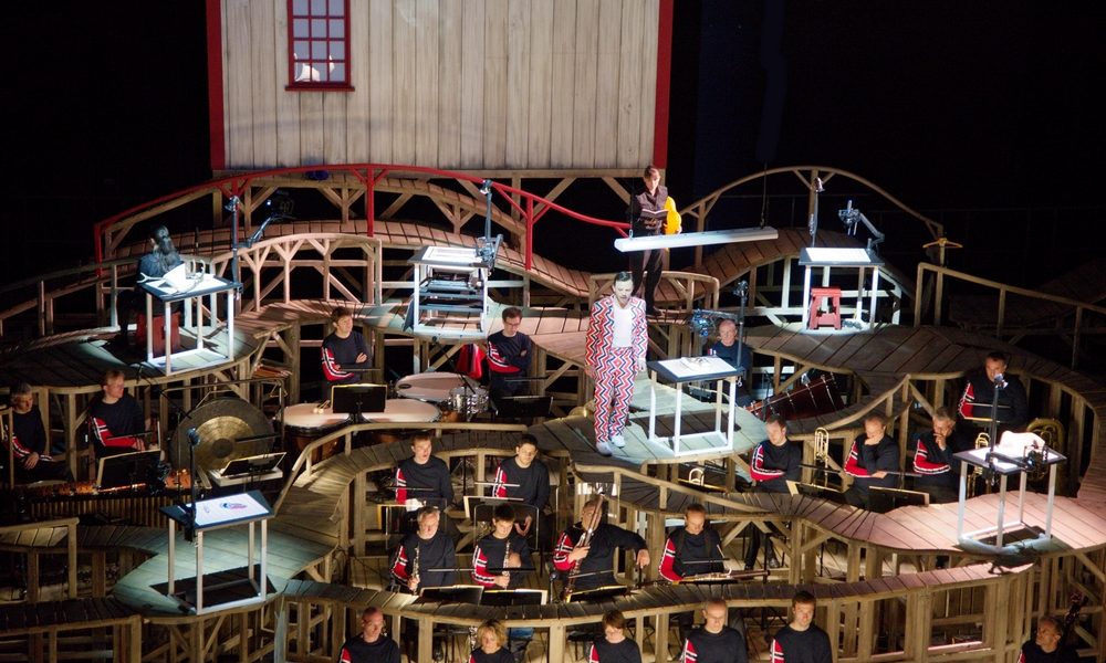 Ce soir, c’est la version complète de la musique de Grieg qui est donnée avec l’orchestre sur scène, entrelacé de passerelles et de six tables vidéo. Les metteurs en scène Jean-Philippe Clarac et Olivier Delœuil ont essayé de mêler l’ensemble sans que la musique ni le théâtre ne prennent le pas l’un sur l’autre. L’ingénieux système de passerelles réduit néanmoins les espaces et les personnages à l’état de lilliputiens perdus sur un océan instrumental. Mais ce que l’on perd en spectaculaire est gagné en dimension poétique entre rêve et réalité, qualité première de cette production. Avec des moments de grâce et d’émotion, dont la mort de la mère, et bien sûr la chanson de Solveig.