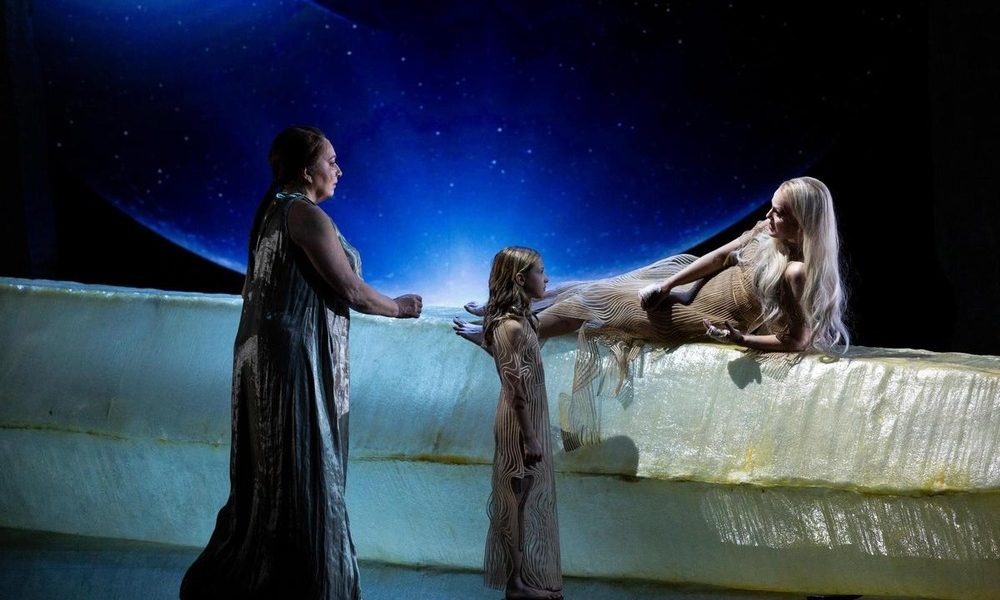 Le réalisateur, Andy Sommer, devient dans le contexte d’une telle captation l’un des artisans du spectacle. C’est lui qui s’approche au plus près des visages et des corps. Dans une lumière bleutée, un Arkel en redingote, appuyé sur une canne blanche, incarne la bonté et une sagesse sans âge. A Matthew Best de donner aux phrases du vieux roi aveugle leur vrai poids, quand sonne un glas sinistre et que meurt Mélisande : « L’âme humaine est très silencieuse… L’âme humaine aime à s’en aller seule… Mais la tristesse, Golaud, de tout ce que l’on voit… » Une petite fille apparait, elle porte la même robe que Mélisande. Alors que tournent les galaxies dans un univers immense et vide, et que vibre une harpe qui s’entrelace au glas, résonnent encore les mots du vieil homme : « C’est au tour de la pauvre petite…»