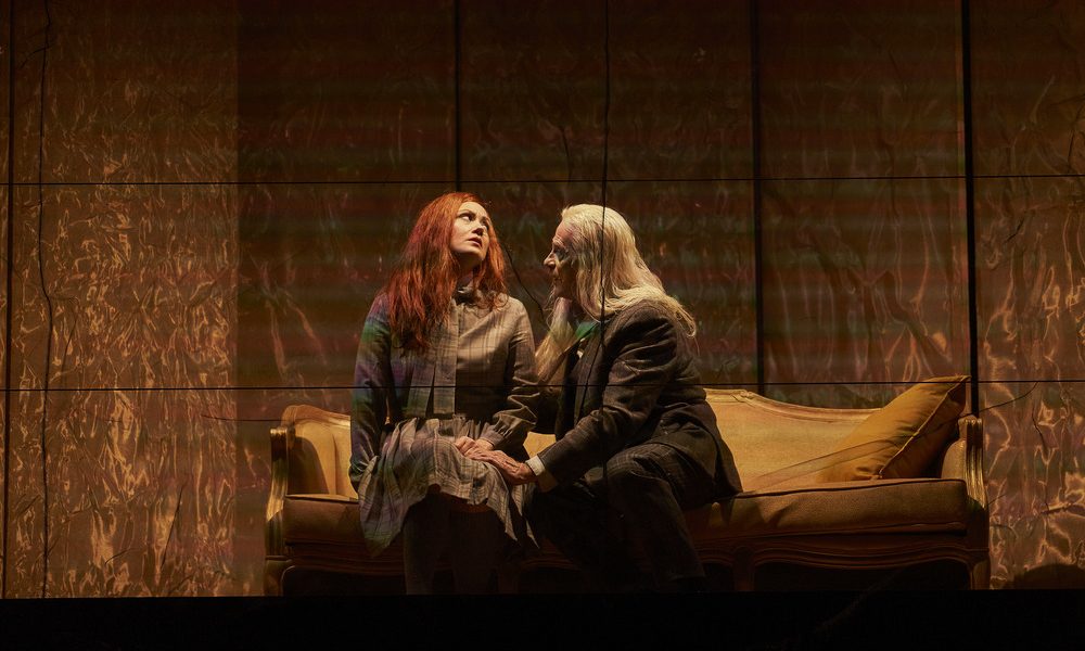 Le devant de la scène est recouvert d’eau – eau, symbole de la fontaine des amants et de la fluidité de la musique de Debussy, eau présente dans les mots d’amour de Pelléas pour Mélisande : « On dirait que ta voix a passé sur la mer… », « Ta voix est plus fraîche que l’eau… », « On dirait de l’eau pure sur tes lèvres ». Alors, Mélisande tend sa main tremblante vers Pelléas et, dans un vibrant clair-obscur, approche ses lèvres pour l’ultime baiser avant la mort. Du pur Maeterlinck mâtiné de Debussy !