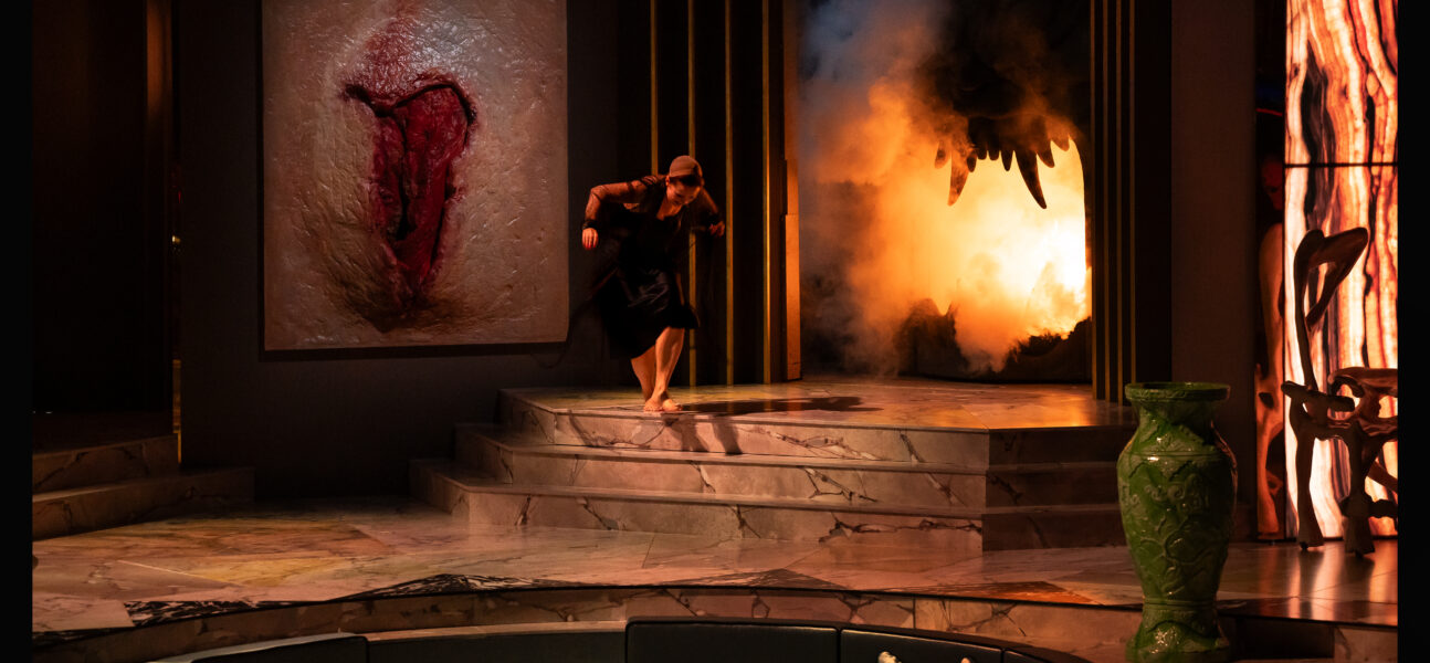 Tout commence très bien, avec un acte I à verser à l’anthologie des meilleures mises en scène de l’œuvre. Dans un immense appartement de style plutôt Art Déco, mais agrémenté de nombreuses œuvres d’art contemporain qui évoquent le corps humain et qui permettent des effets surprenants, Coppens nous montre une haute société décadente et blasée, toute occupée à se faire frissonner de plaisir lorsque les prétendants de la belle Turandot sont exécutés. Sous les splendides éclairages de Peter Van Praet, le Chœur de La Monnaie danse, court, saute et nous en met plein les oreilles, dans des costumes délicieusement rétros. Il y a bien sûr quelques décalages dans les départs, comme toujours dans cette fresque chorale qu’est Turandot, mais l’énergie de la masse emporte tout sur son passage. La direction d’acteurs est exemplaire, en ce qu’elle donne à chaque personnage son poids exact : un Calaf solennel et emprunté, une Liu comme gênée d’être là (et quelle émotion lorsqu’une colonne l’élève vers les cieux et qu’elle entonne son « Liu non regge piu »), un Timur fatigué par les années, le trio Ping-Pang-Pong entraîné dans un burlesque irrésistible ; derrière la transposition, la fidélité à l’œuvre est totale. On regrettera juste deux concessions au wokisme ambiant : Liu transformée en « servante », alors que le terme italien de « schiava » est sans ambiguïté, et l’Empereur qui change de sexe, ce qui ne mange pas de pain mais n’apporte rien non plus. Le deuxième acte se poursuit dans le même décor, ce qui ne gêne pas tant ses possibilités sont multiples, et l’apparition de Turandot en bord de scène, avec son visage éclairé par en bas, fait grand effet. Le personnage, mélange de mégère et de petite fille gâtée, a une vraie consistance. La scène des énigmes est réussie, de même que le début de l’acte III, avec un moment de pure beauté lorsqu’un voile noir translucide tombe des cintres et que trois danseuses lascives entourent Calaf pour l’inviter aux tentations de la chair. On s’apprête à vivre un superbe final. Hélas, Christophe Coppens sombre alors dans un intellectualisme de mauvais aloi. D’une transposition intelligente, il vire vers une déconstruction complète, décidant de transformer le duo final en une scène où Turandot regarde son futur amant à la télévision, après qu’un cadavre non identifié ait surgi d’un tableau contemporain. Outre que cela nous prive d’entendre la voix du ténor dans des conditions naturelles, on ne voit pas très bien le sens de ceci, ni surtout le lien avec ce qui précède, si ce n’est une peur de la part du metteur en scène de s’abandonner à trop de lyrisme. Une fois de plus, la fin de Turandot tombe à plat, comme si une malédiction pesait sur l’oeuvre.