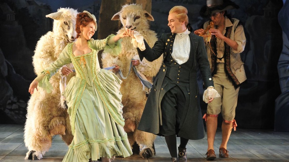 Le rideau se lève sur l’envers du décor, que les figurants monteront et démonteront à l’envi au gré des tableaux, la scénographie de Heike Scheele réinventant les fastes de l’opéra baroque – jusqu’aux vagues factices ! – avec, ici et là, une légère touche de naïveté, sinon de mièvrerie, entre maniérisme et rococo, comme dans ce ciel constellé de putti dont s’orne le rideau de scène du théâtre… dans le théâtre. Vu et revu, éculé, ricaneront ceux qui ne jurent que par la nouveauté, sauf qu’en l’occurrence la mise en abyme s’enrichit également d’une évocation savoureuse du monde de l’opéra au temps de Haendel. Ainsi, la rivalité des sœurs et de leurs prétendants offre une image spéculaire de celle des stars du bel canto : jeux de mains, jeux de vilains et surtout de vilaines qui se tordent aussi l’oreille. Allusion également au chant des castrats dont certaines femmes prétendaient qu’il leur faisait l’amour quand Serse prend le contrôle d’Amastre par le pouvoir de son ramage et que le corps de la princesse travestie se contorsionne de plaisir au gré de la plus extravagante des danses.