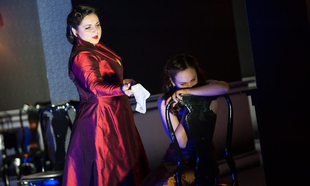 Souvent perçu, et à raison, comme un poncif de la mise en scène contemporaine, la transposition de l’action sous un régime totalitaire des années 30 retrouve ici toute sa pertinence et sa force d’évocation. Alors qu’un habile montage incruste les chanteurs dans de vieilles actualités cinématographiques pour évoquer le triomphe de Silla – « déjà vu », siffleront les blasés en manque d’originalité, oui, mais le plus important, c’est que la proposition fonctionne –, les décors s’habillent eux aussi d’un noir et blanc oppressant, où seuls un billard et les soieries de robes du soir apportent une touche de couleur, mais au luxe glacé. Ce choix scénographique a l’avantage de contourner les difficultés, insolubles, posées par des effets spectaculaires probablement conçus pour les machineries du Queen’s Theater : le char tiré par des dragons à bord duquel surgit le dieu sanguinaire du II ou la tempête qui, au III, engloutit le vaisseau de Silla, des passages dont, par ailleurs, la musique n’a pas survécu, Händel ayant peut-être envisagé de reprendre des pages antérieures.