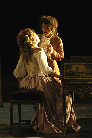 Figaro et Susanna papillonnent d'un bout à l'autre du décor,