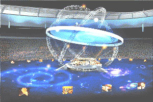 choeurs sont placés dans une gigantesque boule ajourée tournant